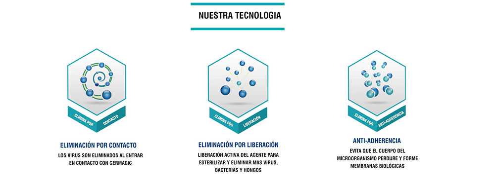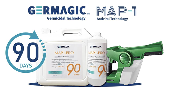 Germagic rompe las barreras protectoras de los virus, aniquilando más de 300 virus gérmenes, hongos y bacterias registrados incluidos el COVID-19.